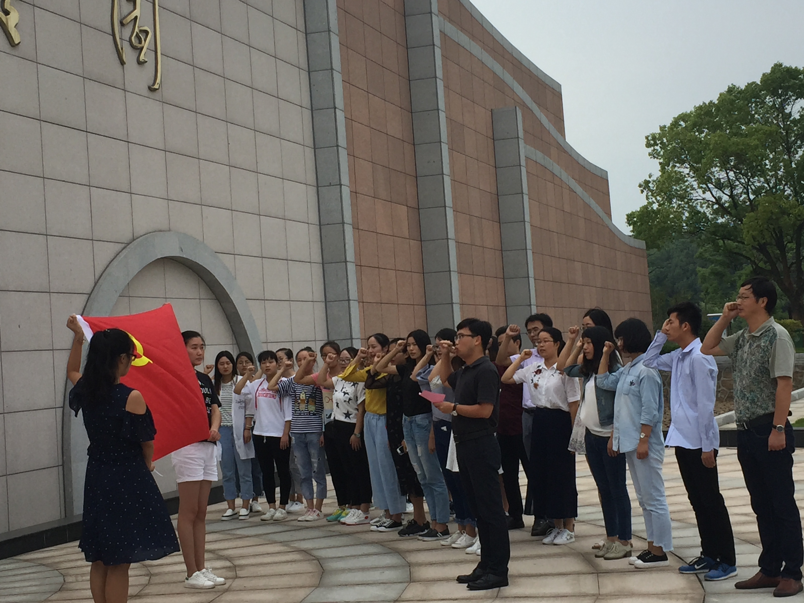 首先,在池州烈士陵园前全体教师党员和学生党员面对鲜红的党旗,进行庄严的宣誓,重温入党誓词。随后大家围绕革命烈士纪念塔慢行一圈,缅怀先烈,寄托哀思。最后大家参观了池州抗战纪念馆,了解了从土地革命、抗日战争到解放战争时期,在中国共产党领导下的池州将士英勇抗敌的斗争历史和光辉业绩。