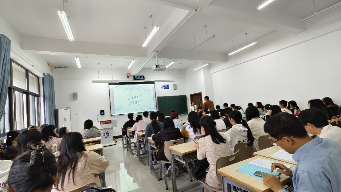 为进一步提升教师的教学能力,为学生提供更高质量的教学体验,10月14日,大学外语教学部举办了一场教学观摩活动。本次课程由黄颖老师主讲,授课对象为2024级汉语言文学专业学生,教学内容为《大学英语3》 第二单元“Beat your fear”。大学外语教学部的教师们积极参与了此次观摩活动。