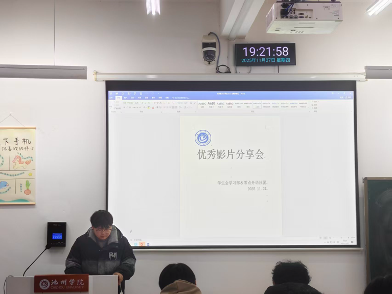 为丰富校园文化生活,搭建学生思想交流平台,引导学生从优质影片中汲取成长力量。2025年11月28日晚,由外国语学院学生会学习部与零点外语爱好者协会共同承办的“拾光赏佳片,共话向未来”优秀影片分享会顺利开展,全院各年级学生代表参与本次活动。