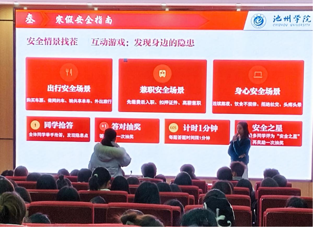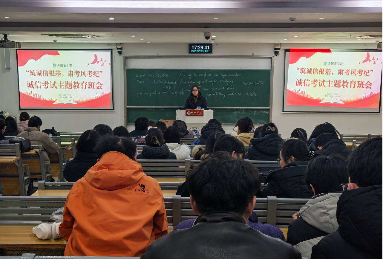 为强化学生诚信考试意识,做好跨年及寒假安全防护教育,保障期末备考与假期生活顺遂,近日,外国语学院组织召开“诚信教育、跨年安全、寒假安全”主题班会。班会结合特色互动环节提供全方位指导与关怀,筑牢安全与诚信防线。